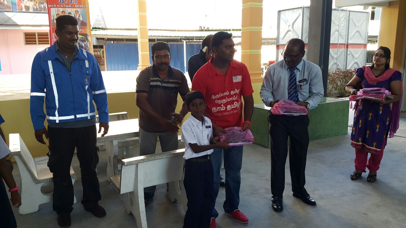 SUMBANGAN IKHLAS PAKAIAN SERAGAM UNTUK MURID-MURID MISKIN TEGAR OLEH PERSATUAN BEKAS MURID SJKT MGK, MKRS BUMI, NAAM TAMILAR MALAYSIA.